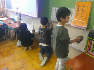 そうじ終了後、「教室がピカピカになって、すっきりした人?」という担任の先生の問いかけに、うれしそうに「はーい!」と手を挙げるこどもたち多数でした。
