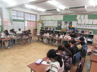 5校時に行われた5年生の算数の授業の様子です。じっくり番外編で、東京教師道場(算数)部員による授業研究です。東京都教職員研修センターの教授、道場のリーダーや部員の先生方が来校して行われるものです。