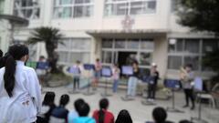 3時間目に校内を回りました。6年生の外国語と家庭科の様子です。前者はALTを交えてアクティビティに取り組み、後者は調理実習や展覧会の作品をはじめとする教師の学習計画の説明を聞いていました。双方とも最高学年らしい姿に安心したところです。もう1枚は視力検査を受ける子たちの様子です。また、登校時には自転車で通学路を回りました。地域の方々がこどもたちの安全を守ってくださることを改めて実感しました。皆様ありがとうございます。