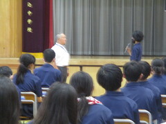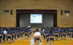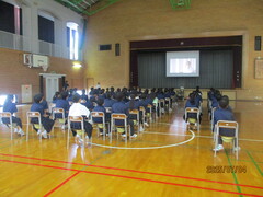 一年生全員が体育館に集まり、薬物乱用防止教室を受けました。