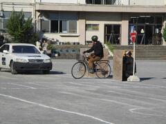 スタントマンによる交通事故の再現を観たり、自転車の危険運転の怖さを体験したりしました。