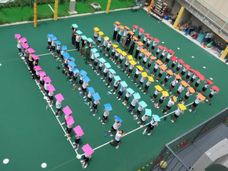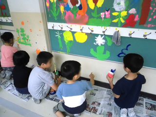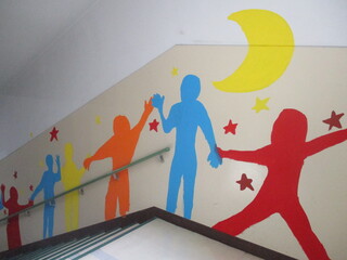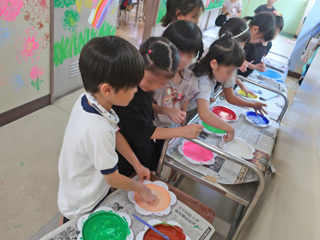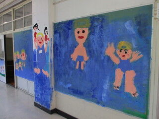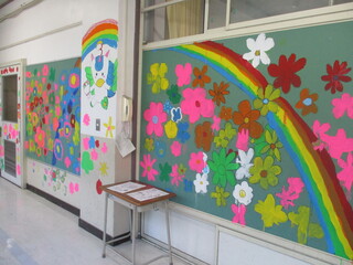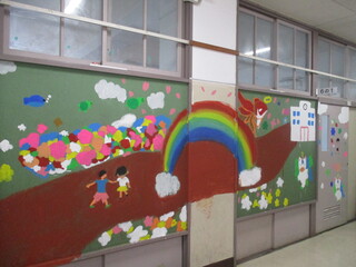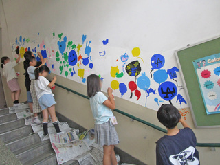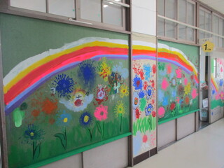各クラスで決めたテーマを基に、色鮮やかな絵を描きました。