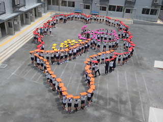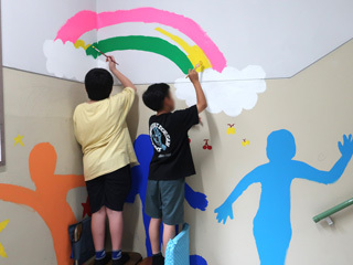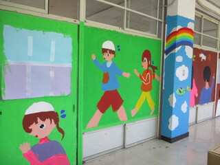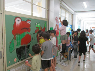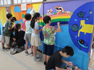 既存校舎を取り壊す前に、感謝の気持ちを込めて校舎に絵を描く「思い出プロジェクト」で盛り上がりました。