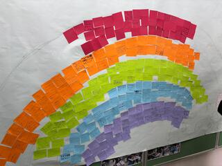 また、靴箱前に掲示しておりました感想アートも完成しました。