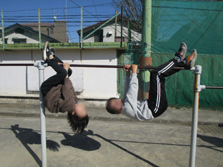 (1)ドッジボール(2)ホームラン競争(3)50m競走(4)ラインサッカー(5)鉄棒(6)縄跳び
