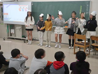 4年生が来年度の担い手として意欲がもてるよう、5年生は発表の仕方を工夫しました。