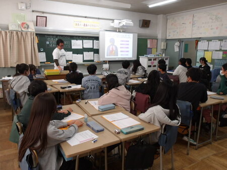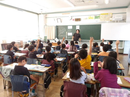4校時の6年生の教室です。体育の学習をしています。今日は、保健の学習です。「病気の予防」という単元で「喫煙」について学んでいます。「成人は、18歳なのに喫煙は20歳から。なぜだと思いますか?」という先生の問いにグループで話し合って、なぜ?について自分の考えを伝えあっています。それぞれのグループの子が発表していますが、みんな発表者の方を向いて話をきいていて立派です。グループでの話し合いの後、先生から喫煙の害について話があり、みんな真剣に聞いていて将来に生かせそうです。
