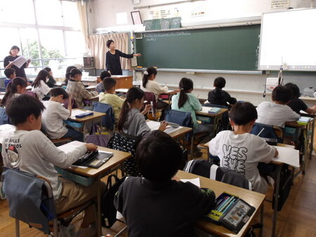 今日は、大田区教育委員会指導課の指導主事の方々が指導訪問にいらしています。3,4,5校時に全学級公開授業をした後、先生方は、指導主事の方々から今日の授業の指導についてお話を伺い、指導法について学んでいます。
