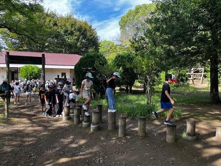 今日は、3年生が平和島アスレチックに遠足に来ています。たくさんの遊具で思いっきり遊んでいます。池の遊具では、池に落ちる子が続出です。それでも楽しく遊んでいます。近くの広場でお弁当を食べ、遊んで…。たくさん体を動かしました。学校まで、帰れるかなぁと心配していましたが、落伍者も出ず、みんな元気に学校まで戻ることができました。