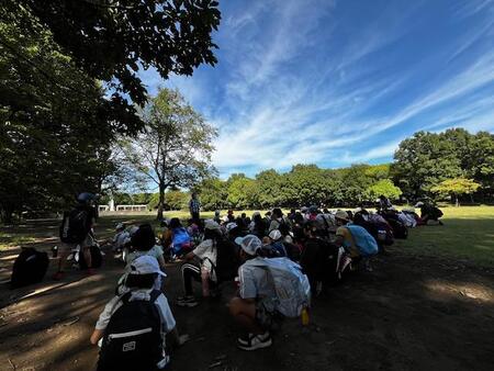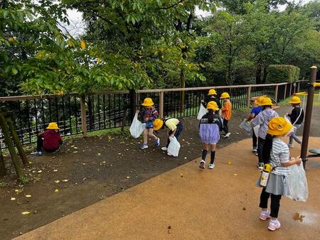 今日は、あいにくの小雨模様でしたが、1年生が生活科見学で多摩川台公園にどんぐり拾いに来ています。自然豊かな公園にクヌギ、コナラなどたくさんのどんぐりが落ちています。どんぐり拾いの時には雨が上がり、こどもたちは嬉々としてどんぐりを拾っています。例年よりたくさんどんぐりを集めて満足そうです。