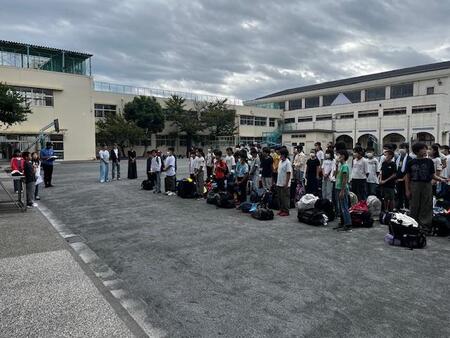 みんなで協力して部屋をきれいに清掃したので予定より早く行動ができています。一緒に宿泊した大森第四小学校のお友達と一緒に閉園式をしています。閉園式では大森第四小学校の校長先生からお話をいただき、学園の副学園長さんからも三日間の振り返りをしていただきました。