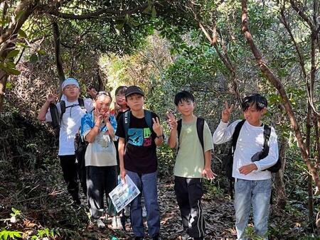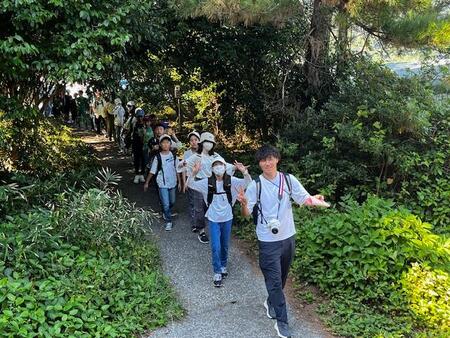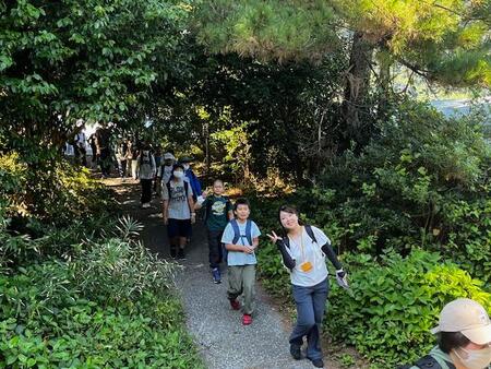ハイキングに出発です。最初はウォーミングアップで各クラス1列で出発。途中から、グループごとにオリエンテーリングです。各チェックポイントを回り、無事ゴールできるでしょうか?