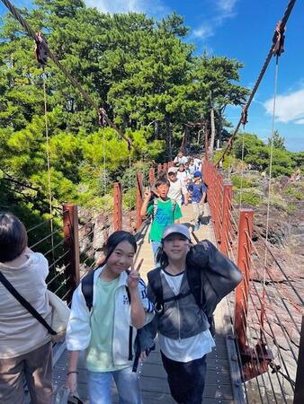吊り橋上でハイチーズ!