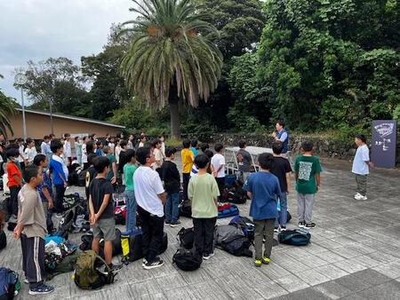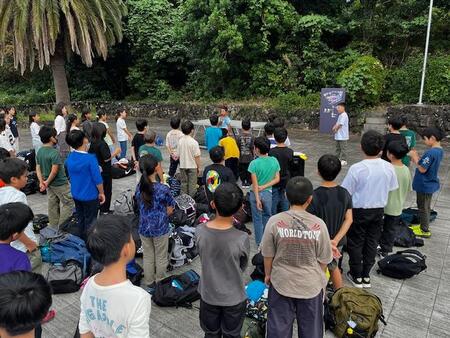 無事伊豆高原学園に到着しました。みんなよく歩きました!開園式で学園長さんのお話を聞き、学園のルールや生き物について教えていただきました。代表児童のあいさつも上手でした。これから、部屋に入ります。