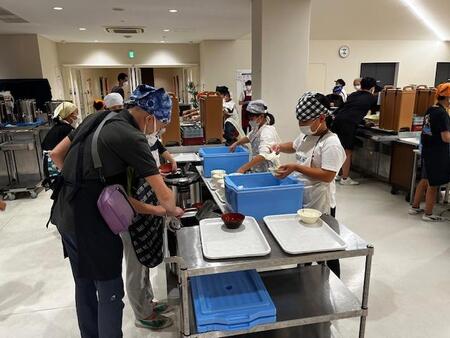 調理班は、調理の仕方を教わって