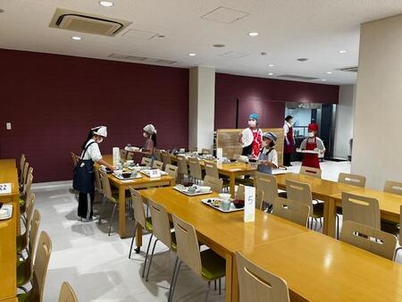 もうすぐ夕食の時間です。みんなより少し早く食事係が食堂にきて、みんなの食事の準備をしています。初めての学園での食事ですが、手際よく準備をしています。