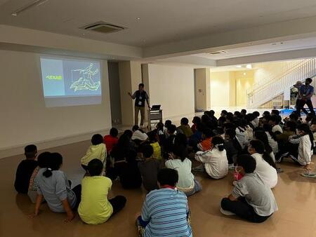 初めは、屋内で星座の話を聞いています