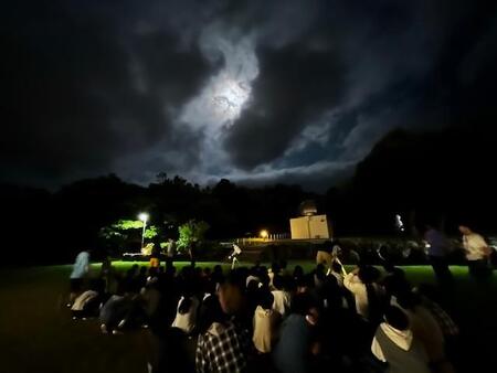 夜7時半から星空観察会をしています。最初は、曇っていたので屋内で星座のお話を聞いていました。途中から晴れてきて満月が見えてきたので、外へ。望遠鏡で満月を見て、歓声を上げていたこどもたちです。大きな望遠鏡も見学させてもらいました。終わった後は、みんな眠そうにしています。今日は、いっぱい動いて疲れたことでしょう。みんな早く夢の中へいきそうです。