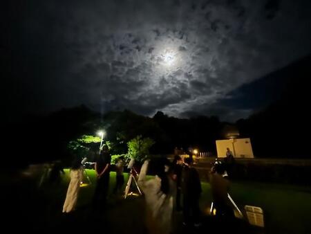 雲の隙間から見える満月が望遠鏡からきれいに見えました