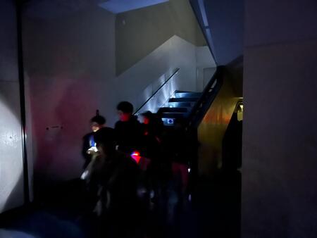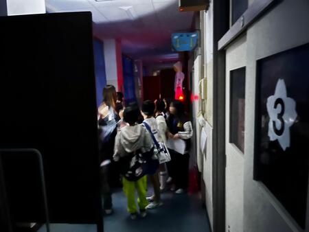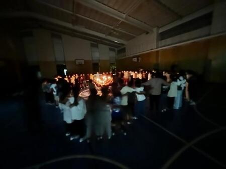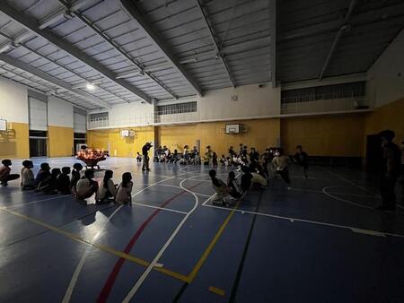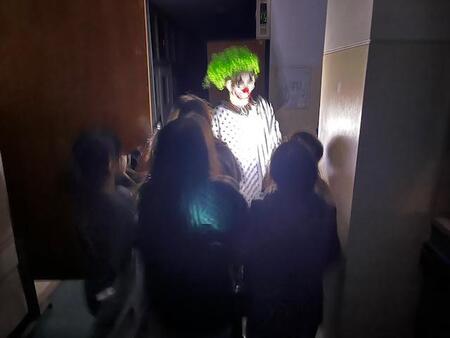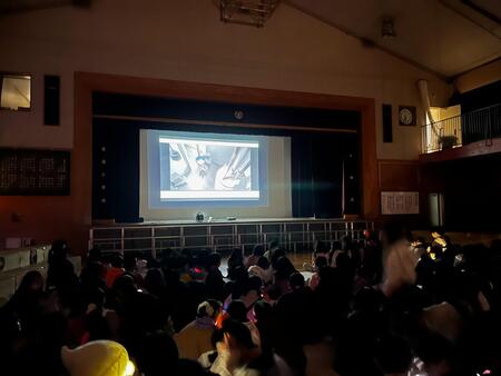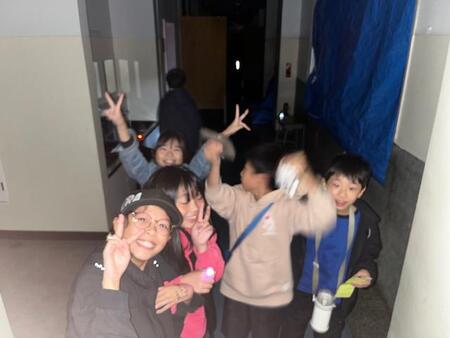 夜の学校です。こどもたちの悲鳴が校舎内に響き渡っています。今日は、スマイルパパ主催のホラーナイトが行われています。今年は、4年生以上の児童が参加可能なホラーナイトです。こどもたちは、体育館で映画を見ながら順番を待ち、4,5人ずつのグループで校舎内にあるお札を集めてゴールを目指しています。お化け役のスマイルパパや先生たちのおどかしにも負けずに勇気を出して、ゴールを目指しています。先生お化けに会うと、「○○先生だぁ!」と怖いながらも喜んでいるようです。スマイルパパの皆様、PTAの皆様こどもたちのために楽しいイベントを開いてくださりありがとうございました。