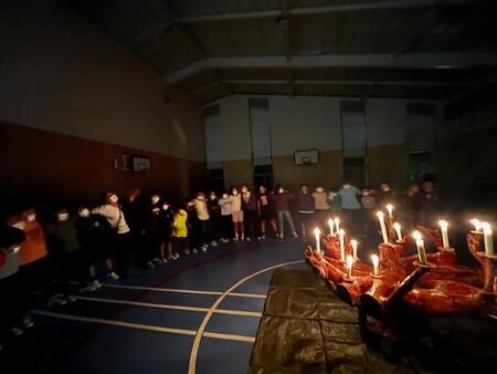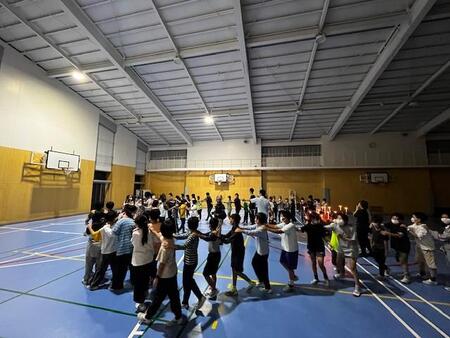 キャンドルファイヤーです。火の神から、誓いの火をいただき、キャンドルに点火しました。そのキャンドルを囲みながら、歌を歌ったり、ハンカチ落としや猛獣狩りゲーム、じゃんけん列車を楽しんだりしました。最後は、キャンドルの火を見つめながら、「ビリーブ」を大合唱して、楽しかったひと時を振り返りました。本日の更新はここまでです。明日は、最終日。元気にお土産話をいっぱいもって帰れるといいです。