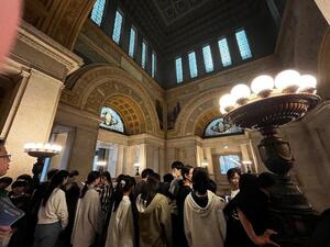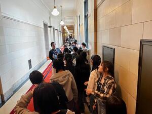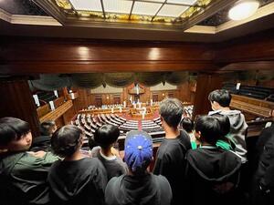 今日は6年生が、社会科見学に来ています。最初に国会議事堂を見学しています。日本の政治の中心を見学しながら、その大きさに驚いているようです。参議院プログラムでは、国会議員になって実際の法案がどのように成立するのか模擬委員会、本会議を体験しながら学んでいます。北の丸公園でお昼を食べ、楽しく遊んでいます。昭和館では、戦時中と戦後復興の時代の展示物を見学しながら、今とは違う生活を想像していました。メモもたくさん取っていたこどもたちでした。1日を通し、オンとオフの切り替えがしっかりできる6年生の行動に感心しました。さすが、道塚小のリーダーです。卒業まで道塚小を引っ張っていってもらいたいです。