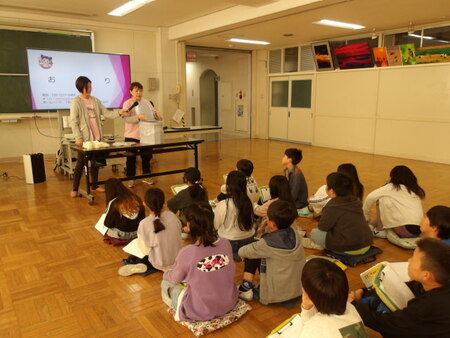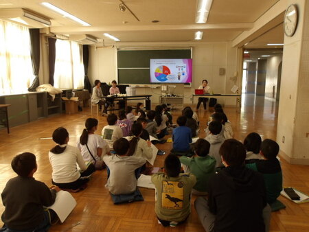 2校時の視聴覚室です。4年生は、総合的な学習の時間に防災について学んでいます。今日は、「コネクト」というNPO法人の方に来ていただき、防災トイレについて学んでいます。災害時に困ることの第1位がトイレ問題。被災した時のトイレ事情やどうしたらトイレ問題を解決できるかお話を聞き、実際に携帯トイレを見たり、においの出ない特殊な袋を触らせてもらったりしています。お話を聞くことで、今後防災についての学習が深まっていきそうです。「コネクト」の皆様、ありがとうございました。