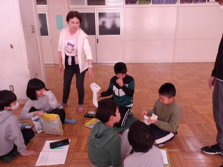 集会委員会のこどもたちがゲームやなぞなどをしています