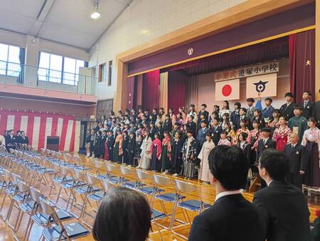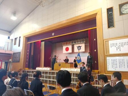 今日で令和7年度もおしまいです。体育館では、令和7年度修了式が行われました。各学年の代表が、修了証をいただきました。4月には、1学年進級です。5年生が児童代表の言葉を発表しました。5年生での経験を活かし、4月から最上級生として道塚小を引っ張っていってくれる決意を発表してくれました。最後は、みんなで校歌を合唱しました。