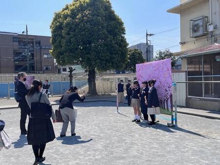 フォトスポットで記念撮影
