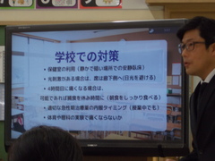 2月5日(水)に、図書室で学校保健委員会がありました。校医の先生方と薬剤師の方から、保護者と教員を対象に、南六小のこどもたちの健康や成長についてお話しいただきました。また、内科校医の三浦先生に「こどもの頭痛について」という題目で講演をいただき、参加した保護者の方からも興味深い質問が寄せられるなど、大変に内容の深い委員会でした。