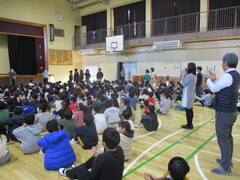 今朝の音楽朝会は、5・6年生が卒業式で歌う合唱曲「最後の一歩、最初の一歩」の発表会でした。卒業式まで、今日を入れても学校に来るのはあと8日。本当に早いものです。在校生からは、「歌声が合っていてとても上手だった。」「とてもきれいな歌声だった。」などの感想が出されていました。最後に、全員で「Good-by また明日ね」を合唱しました。ご参観いただいた保護者の方々からも、大きな拍手が起きていました。