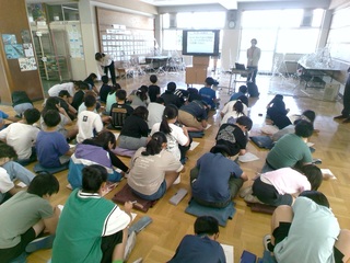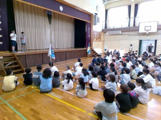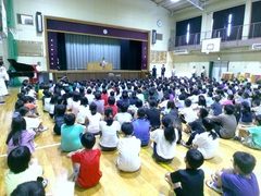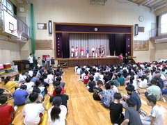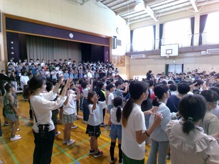 今日は8時30分より体育館で1学期の終業式がありました。校長先生の話、児童代表の言葉の後に校歌を歌いました。私は、校歌を全員で歌うことが大好きです。最後に、生活指導主任の先生から夏休みの生活についての注意がありました。いつもより少し長い44日間の夏休みを、一人一人が皆、思い出に残る素晴らしいものにしてほしいと願っています。