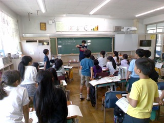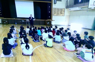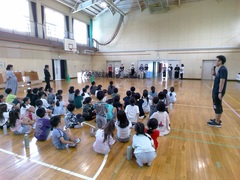 5月28日(火曜)に、4年生の投げ方教室がありました。当日は降雨のため、体育館で遠くまでボールを投げるポイントを指導していただきました。「トントン」「クル」と声を出しながら体の回転を使って投げることなど、体育の授業でも使えるとても奥深い内容でした。プロの選手に指導していただき、4年生もしっかりと理解していくことができていました。