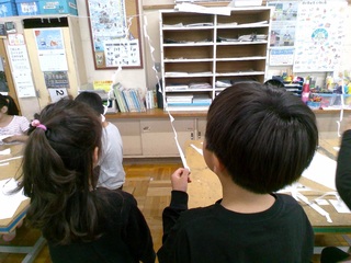 今日は3時間目に1年生の図工と5年生の音楽を参観しました。1年生は、全員が先生の話を良い姿勢で最後までよく聞き、指示を守って「すいすいこいのぼり」を作ることができていました。作った後は教室に飾るそうで、楽しいこいのぼりの泳ぐ教室になるのが、今から楽しみです。5年生は、先生の指示を聞いて二部合唱に取り組んでいました。「believe」と「すてきな一歩」の、きれいな歌声が音楽室に響いていました。