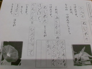 今日は授業観察で1時間目に3年生の道徳、3時間目に1年生の国語を参観しました。3年生は自分の体験や「ともだちや」の題材から、ロールプレイングも使って「本当の友達とはどんな友達か」を考えていました。1年生は「つぼみ」の説明文から、あさがおのつぼみについて読み取り、疑問や分かったことをワークシートに書くことができていました。