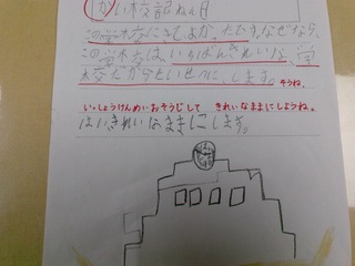 今日は授業後半のみですが2年生の国語を参観しました。「絵に描かれた島の様子について、句読点の使い方に気を付け、提示された漢字を使って文を書く」ということがめあてです。5時間目でしたが、最後まで集中を切らさずに学習できていました。