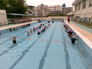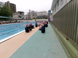 今日は待ちに待った1・2年生のプール開きでした。南六小のプールはとてもきれいで、壁に楽しい海の絵が描いてあります。先生のお話をよく聞いて、しっかりと注意を守って水に入ることができていました。