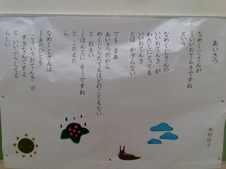南六小の階段の各踊り場には、とてもすてきな詩の掲示があります。各学年の先生が、それぞれ月ごとに詩を選んでいます。私は詩が大好きなので、階段を通るたびに嬉しくなります。また来月は、どんな詩が読めるかな?