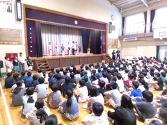今日は音楽朝会で2年生の発表があり、たくさんの保護者の方々が参観に来られました。2年生は鍵盤ハーモニカで上手に「かっこう」の曲を演奏し、大きな拍手をもらっていました。最後に、全員で「はじめの一歩」を歌いました。きれいで元気な歌声が、朝の南六小に響いていました。