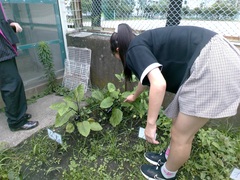 南六小には、学校生活を良くするための様々な委員会が設置されています。今日はその中の一つ、栽培委員会の作物の収穫日でした。6校時の委員会の時間に、今まで愛情を込めて育てた作物を協力して収穫していました。