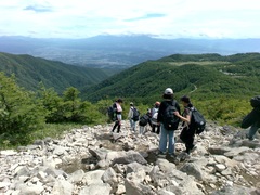 2階建てバスで出発です。昼食後、東篭ノ登山(2228m)に登山しました。往復2kmで距離は短かったのですが、山頂直下は岩がゴロゴロした急登で登り辛かったです。みんなで励まし合って登り切った山頂からの眺望は、忘れられないほど素晴らしいものでした。大田区休養村とうぶに到着して開園式を行い、入浴(温泉)後はりんごジュースのご褒美が出ました。夕食後はキャンプファイヤーで盛り上がり、また、雲間から見えた星空の美しさに感動しました。天候が心配されましたが、予定通りに全てのスケジュールを実施できました。明日が楽しみです。