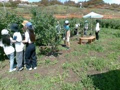 2日目は明け方に降雨がありましたが、大変に良い天気に恵まれました。朝会・朝食後に、午前中は上田城を見学しました。事前に上田城や初代藩主の真田氏のことを学習して臨んだため、全員が大変に主体的に見学を行うことができました。私も10年振りの見学でしたが、改めて上田城が堅固な要塞であることを再認識しました。猛暑のため冷房の効いたバス車内で昼食をとり、道の駅「雷電くるみの里」(江戸時代の名横綱「雷電」の出身地であることと、日本一のくるみの生産地であることから名前が付いたそうです。)でお土産を購入しました。午後は松井農園でブルーベリー狩りです。農園の指導員の方々からとても丁寧な説明を受け、お腹いっぱいにブルーベリーを食べることができました。帰園後、ゆっくりと入浴をして夕食をとり、夜は体育館でレクリエーションを行いました。本日も全ての予定を実施することができました。明日は、いよいよ最終日です。
