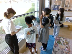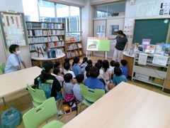 今日はなかよし班活動で児童集会がありました。カーテンの隙間から見えたものを、班ごとに相談して当てるゲームです。私は最後に「チラッ」と登場しましたが、即答で全班正解でした。変装すればよかったかな?