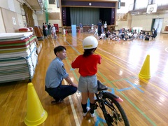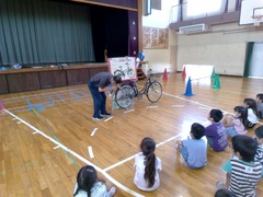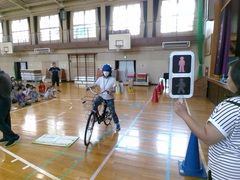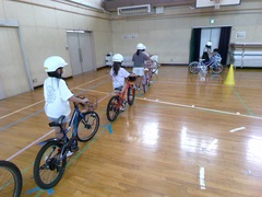 3・4校時に、3年生の自転車安全教室がありました。大田区の交通安全指導員と蒲田警察署の交通課の方々を講師にお招きしました。本来なら校庭で行いますが、30℃を超える猛暑日のため、冷房の入った体育館で開催しました。自転車の安全な乗り方について、パネルや実演などで分かりやすく講習を受けた後、実際に設置コースを一人ずつ自転車で走ります。たくさんの保護者の方々にもお手伝いいただき、「右、左、右、右後ろ」の確認を行って全員が安全走行を行うことができました。御協力いただいた皆様、ありがとうございました。