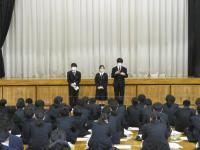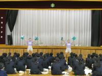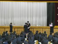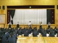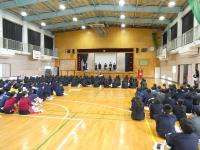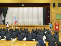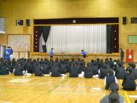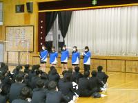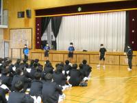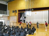 4月11日に実施された新入生オリエンテーションでは、全校生徒が体育館に集合し、新入生に向けて、生徒会に所属する子どもたちから行事・委員会の紹介、各部活動の部員たちから部活動紹介が行われました。