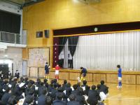部活動紹介では、各部活の部員たちが、活動日時や実績を説明したり、活動の様子を実際にして見せたりしながら、楽しく紹介してくれました。