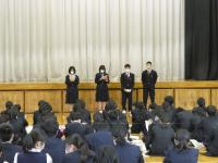 生徒会役員は、この日のためにプレゼンテーション資料を作成し、動画などを用いてわかりやすく委員会活動などの中学校生活を紹介してくれました。