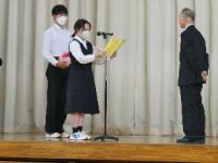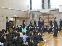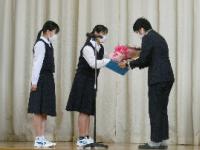 式が始まり、代表生徒がお礼の手紙を読み、先生が話し始めると、生徒たちは1人1人の話をじっくりと聞いていました。