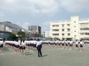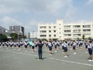 開閉会式の流れの確認のほか、準備体操や校歌斉唱の練習などを行いました。